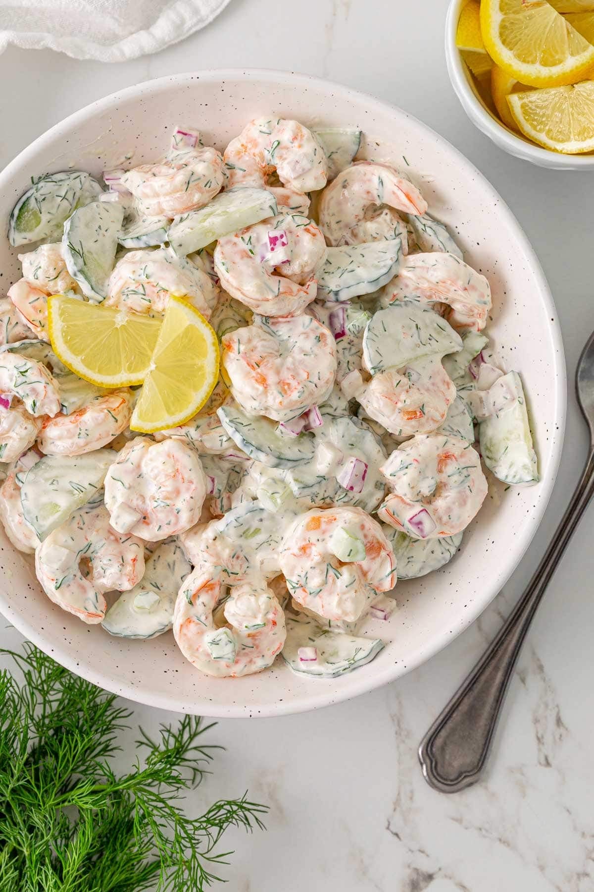 This creamy and refreshing Cucumber Shrimp Salad is made with shrimp, sliced crisp cucumber, and pantry and fridge staples, and takes just 20 minutes to prepare.